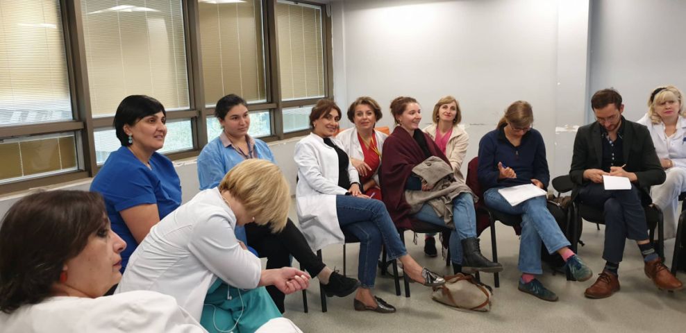 პროფესიული განვითარების ფარგლებში გერმანელ კოლეგებთან შეხვედრები გრძელდება. სტუმრებს ამჯერად რესპუბლიკურმა საავადმყოფომ უმასპინძლა. პროფესიული გამოცდილება და სამომავლო თანამშრომლობის გეგმები გერმანელ კოლეგებს ექთანთა გაერთიანების ხელმძღვანელმა ია გელენიძემ გაუზიარა. მასპინძლებმა ასევე მოისმინეს უცხოელი კოლეგების მოსაზრებები და მათთვის საინტერესო კითხვებს უპასუხეს.